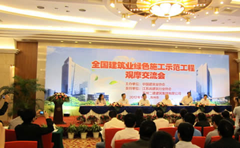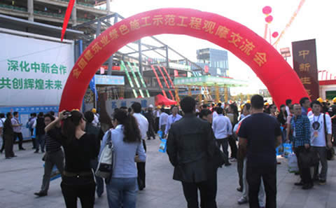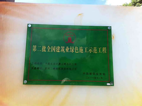 2012年10月11日,由中国建筑业协会主办的全国建筑业绿色施工示范工程观摩交流会在苏举行,中国建筑业协会、各省建筑业协会、园区规划建设局及全国重点施工企业代表1000余人参加了会议。会议中国建筑业协会在全国范围类遴选出最优秀的绿色施工工地进行了现场观摩,我公司的中新生态大厦项目作为“第二批全国建筑业绿色施工示范工程”成为本次观摩交流会唯一的观摩工地。