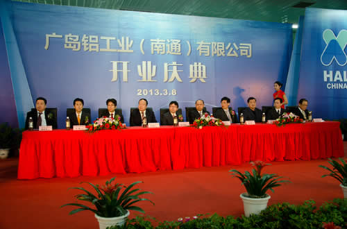2013年3月8日上午,首个落户园区的日资企业——广岛铝工业(南通)有限公司在苏通科技产业园举行了隆重的开业庆典,苏通园区管委会副主任周少华、中新苏通公司总裁彭彬、广岛铝公司董事长田岛、总经理谷内、大连巨坤公司董事长等参加了开业仪式。