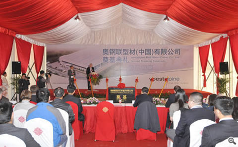 4月3日上午,奥钢联型材(中国)有限公司在苏州工业园区举行新工厂奠基仪式。奥钢联中国型材公司新工厂投资大约两千万欧元,预期于2013年底可以开始生产高级管材钢及型钢。