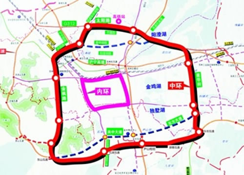 中环快速路北段有一部分为312国道苏州段分流线工程。312国道苏州段是苏州市重要的东西向对外及过境交通干线,横穿了金阊新城、平江新城的核心区。随着城市建设的不断推进,312国道苏州段的部分路段通行能力和服务水平大幅下降,交通安全隐患大、事故多。为此,利用中环快速路建设契机,苏州市将对312国道苏州城区段实施分流,移位到太阳路,目前该项目获得省发改委立项批复。根据中环快速路规划,312国道苏州段分流线工程东接中环园区段,西接西环快速路北延工程,路线全长约16公里,按6车道一级公路设计,设计速度100公里/小时。其中高架桥长约12.8公里,穿越阳澄湖隧道长2.31公里,其余采用地面道路。全线共设互通式立交4处,并分别在星湖街两侧、S227两侧、澄阳路两侧、广济北路东侧、苏埭路西侧设置8对进出口匝道。该项目建成后将在苏州北部形成一条新的横贯东西的交通主干线,东连工业园区,西接苏南硕放国际机场、快速连通京沪高铁苏州北站,与中环其他段落、内环及放射线共同构筑苏州市快速路网。