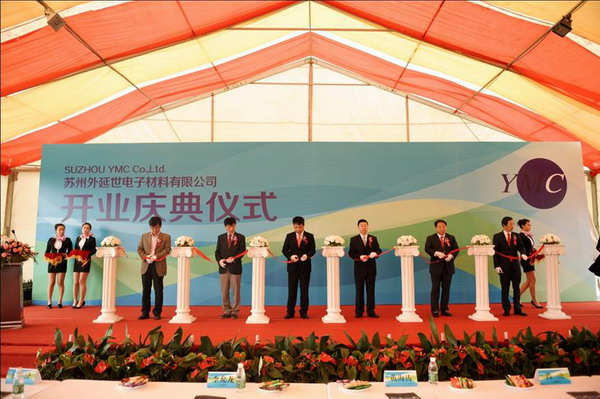 2014年4月25日下午,苏州外延世电子材料有限公司在苏州工业园区华凌街新工厂举办开业典礼。苏州工业园区管委会副主任黄海涛、苏州三星电子液晶显示科技有限公司董事长林官泽、韩国YMC株式会社社长李允龙等以及70多位企业家、业界精英出席了开业典礼。苏州外延世电子材料有限公司设立于2013年4月,由韩国YMC株式会社投资,注册资金700万美金、总投资1750万美金,主要从事研发、生产平板显示屏和半导体工程用靶材及配件,是苏州三星电子液晶显示科技有限公司(SSL)的主要配套商。公司投产后年产能将达30万套、年销售额将达到5亿元人民币。