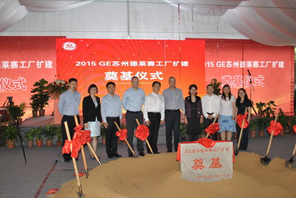 2015年6月17日 苏州通用电气(GE)石油天然气集团苏州流体过程技术工厂(GE德莱赛机械(苏州)有限公司)举行扩建典礼,未来苏州工厂将从单一生产基地模式,转变为集研发、生产、测试、售前售后服务为一体的全球阀门技术中心。园区管委会主任杨知评、副主任孙燕燕以及GE公司负责中国供应链的副总裁Olivier Fontan等领导嘉宾参加此次扩建典礼。