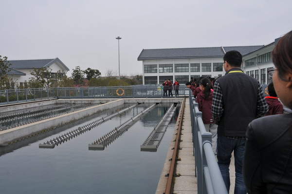 离开阳澄湖水厂,参观队伍来到苏州工业园区第二污水处理厂。二污厂近紧邻吴淞江,是江苏省最大的首座完全按照太湖流域污水排放标准建设的新建污水处理厂,一期工程设计污水处理能力15万吨/日,由中新公用旗下苏州工业园区清源华衍水务有限公司投资建设。