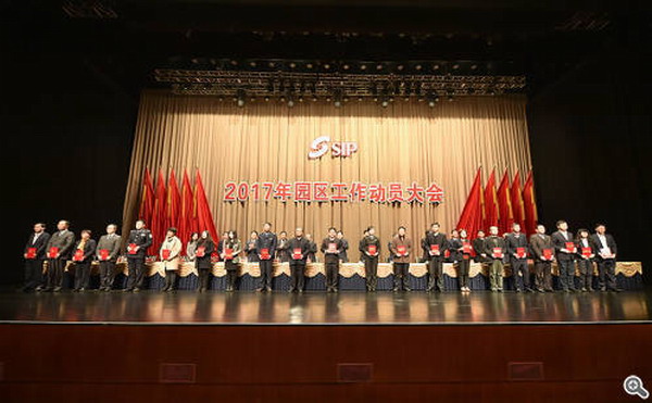 徐惠民在讲话中指出,2017年园区将以创新引领转型升级,围绕“创新四问”,进一步明确创新风向标,扩大创新工作面,贯通创新价值链,优化创新生态圈,启动实施创新产业引领、原创成果转化、标志品牌创建、创新生态建设等四大工程,加快发展生物医药千亿级新兴产业,积极打造国内第一的纳米技术产业化基地,提前布局以大数据和云计算为支撑的人工智能产业,以富民提升园区经验,优化中央商务、科教创新、高端制造、国际物流、总部经济、旅游度假等板块功能布局,扎实推进31项实事项目,积极构建富民增收长效机制,持续深化中新合作,推进开放创新综合试验,系统叠加复制自贸区政策功能,推进落实履职保护、绩效考核、创新激励、责任追究“四项机制”,为走在“两聚一高”最前列提供保障。
