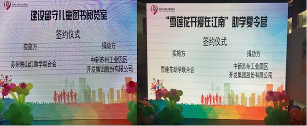 中新集团已经是第二年参加园区公益伙伴计划,2016年与映山红助学联合会签订协议,捐助公益伙伴计划中的贵州省瓮安县留守儿童之家建设项目。今年,中新集团除了继续为贵州省瓮安县建设留守儿童图书阅览室之外,还与雪莲花助学联合会签订了协议,捐助雪莲花助学夏令营的项目。7月14日,中新集团作为爱心企业代表参加了雪莲花助学联合会2017“奔跑吧,青春”助学夏令营开营仪式,向来自陕西的学生表示欢迎,向志愿者辛勤的付出表示感谢。这两个助学项目的捐助对象都是贫困山区的孩子,中新集团助学活动不仅帮助孩子们点燃梦想,让他们尽可能地开拓眼界,更重要的是让他们感受到社会的关爱和正能量。