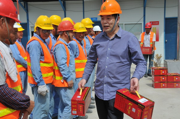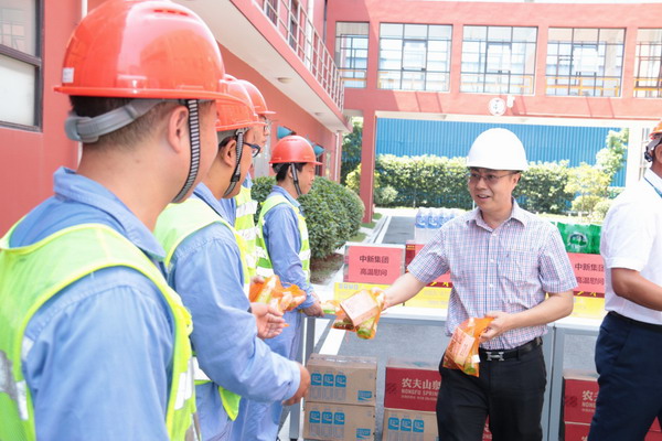 防暑降温送清凉 7月28日上午,中新集团董事长、总裁赵志松带队,赴中新公用旗下苏州工业园区中法环境技术有限公司、中新苏州工业园区远大能源服服务有限公司,检查安全生产工作,并慰问一线员工。