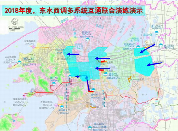 演练期间,全市互联互通供水管网系统运行正常,由独立供水转变成连片互通供水,降低了各市、区单一供水系统的风险,并筛选出了最佳联动支援供水方案,实现不同供水区域间应急情况下能够相互支援的目标,形成长江与太湖“江湖共济”的供水格局。