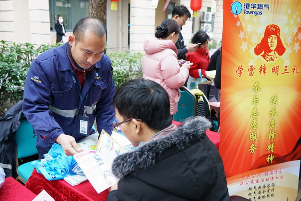 在3月5日全国第56个学雷锋日前后,苏州港华党员及社区大使就大显身手,大家以社区活动为载体,发扬义工队惠泽社群的公益精神,积极参加学雷锋志愿活动。3月1日和2日,社区大使蔡宁、唐玉飞分别来到新加社区和贵都社区,为空巢老人家庭免费更换灶具软管。3月3日,在由园区团工委、东沙湖社区党工委联合举办的“360°公益街”便民服务活动中,社区大使周石磊和李寻在现场发放宣传单页,解答用气问题,预约上门服务,为居民提供便民服务。
