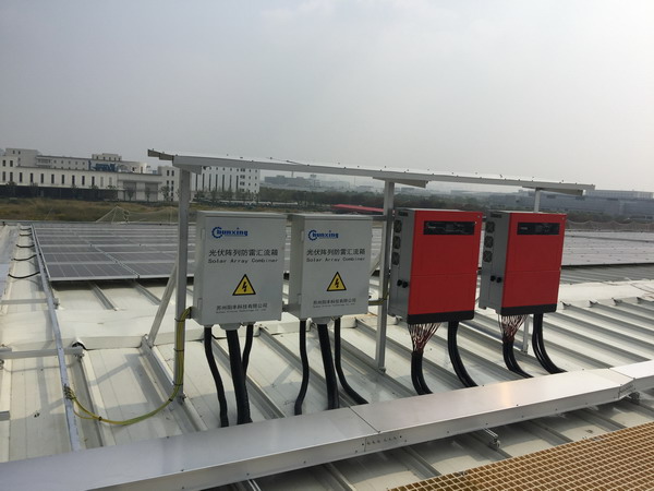 中新集团下属公司中新春兴新能源电力(苏州)有限公司获悉情况后,立即安排人员现场勘查和沟通。该厂房是直立锁边型彩钢瓦屋顶,屋面承重余量充足,十分有利于建设光伏电站。厂房业主和康美包对用中新春兴新能源提出的“闲置屋顶”产出“清洁电力”的理念和模式都十分认可,项目迅速推进并完成。