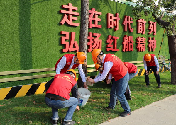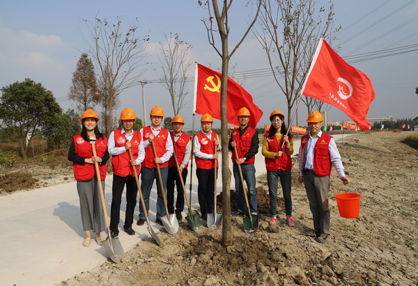 11月的嘉善,秋高气爽。11月4日,中新集团中新嘉善党支部全体党员在支部书记刘建中同志的带领下来到中新嘉善现代产业园现场开展党员志愿服务。党员志愿者们齐心协力,一同种下第一批属于中新嘉善的小树苗。有的志愿者挥锹铲土,有的志愿者扶树种植,有的志愿者提桶浇水,大家有序分工,用自己的双手为园区环境增添一抹亮丽风景线。