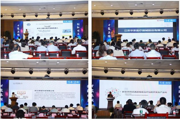 此次路演邀请了来自深圳、杭州、苏州、天津、成都等5个城市的创业团队和创业企业进行现场路演,6位在创投方面经验丰富的公司总监、总裁担任评委。项目内容涉及医疗器械、人机交互、康复训练等,分别是You伴机器人、华系医疗-感染控制医疗器械产品、牧瞳星-干眼症辅助诊疗康复训练仪、新型手持式透皮吸收治疗仪的开发及产业化以及脑控人机交互及在专注力场景中的应用项目。