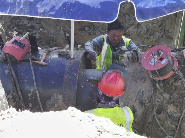 苏州东吴热电有限公司正实施南湖路快速路东延热力管线迁改工程,施工人员挥汗如雨。