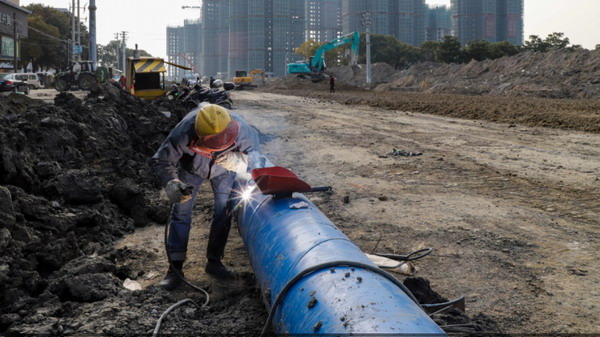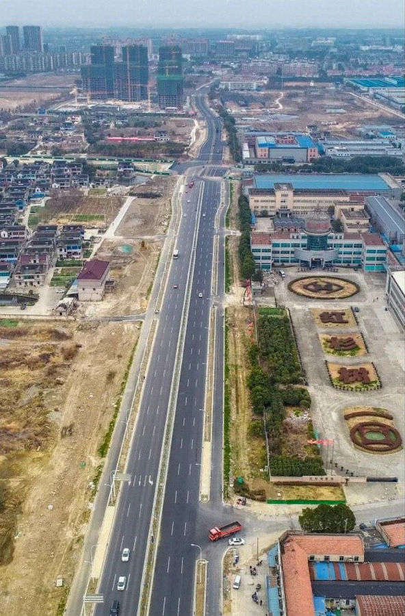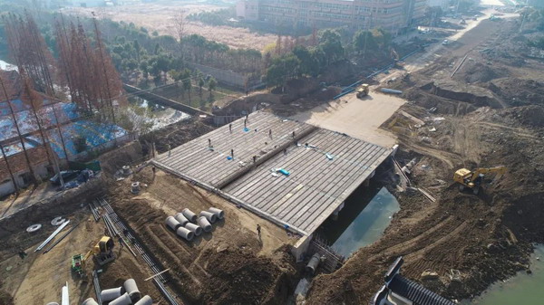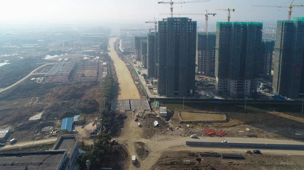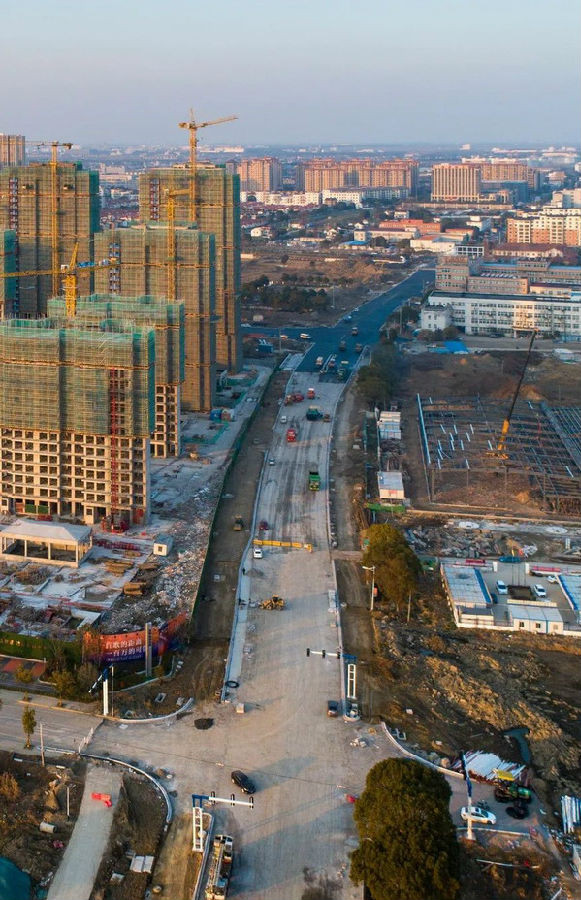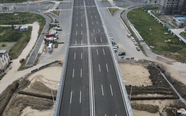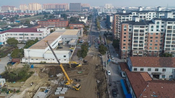 该工程于2021年8月动工建设,是中新海虞花园城项目“九通一平”基础设施建设的重点工程之一,道路全长1.25公里,总投资约9300万元,原址向西拓宽至36米双向四车道。