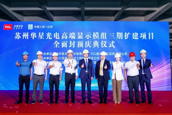 8月31日,由中新集团引进的苏州华星光电显示有限公司在苏州工业园区举行高端显示模组三期扩建项目封顶庆典仪式。该项目厂房总计11.7万平方米,产品为15.6寸~34寸显示器、电视用TFT-LCD显示模组,建成后年产能3000万片,总投资27亿元。该项目是为了提升TCL华星在中尺寸市场核心竞争力的战略举措,项目建成后,将进一步巩固国内显示面板产业的全球领先地位。苏州工业园区投资促进委员会主任蒋卫明,中新集团副总裁田雪鸰出席活动。