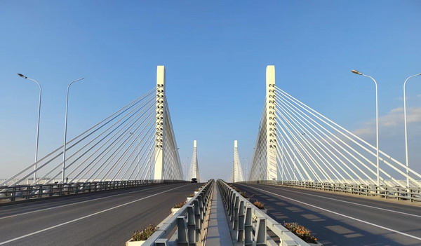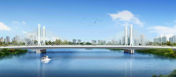 其中滁州大桥为559米长、60.5米宽的宽幅矮塔斜拉桥,上跨清流河及滨河南路,主跨135米,塔高32.5米
