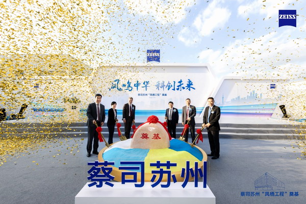 10月18日,全球光学及光电技术领军企业德国蔡司集团在金光产业园奠基启动“凤栖”工程建设,这是蔡司在国内首次购地自建项目,标志着蔡司在中国本土化进程的进一步深化与扩展。园区党工委副书记、管委会主任林小明,园区党工委委员、管委会副主任刘华,中新集团副总裁田雪鸰出席活动。