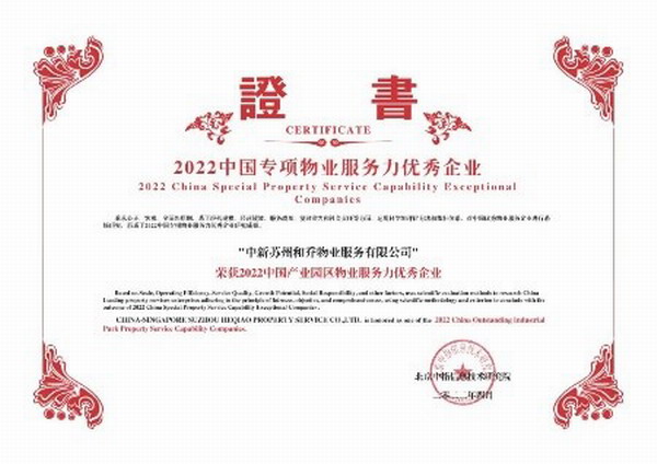 近期,苏州工业园区委托苏州大学社会公共文明研究所,对辖区各街道板块开展了为期7天的现场文明测评。中新和乔物业管理的星湖天地、星湖公馆在此次测评中脱颖而出,分别在示范街区、居民区板块评分中名列第一。不仅如此,今年上半年,在中指研究院主办的中国物业服务百强企业家峰会中,中新和乔物业一举斩获“2022中国物业服务百强企业”、“2022中国国有物业服务优秀企业”、“2022中国产业园区物业服务力优秀企业”等多项殊荣。