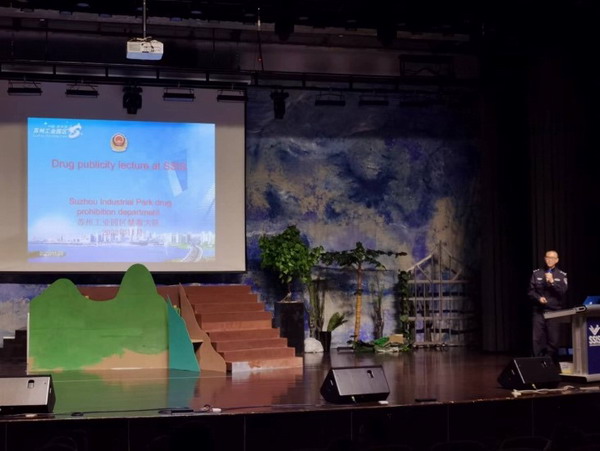 园区公安分局交警大队杨警官通过PPT和卡通动画的形式,生动活泼地普及《机动车登记规定》《江苏省电动自行车管理条例》《江苏省道路交通安全条例》等交通法律常识。园区公安分局禁毒大队张警官,详细介绍了毒品的含义、种类、危害以及毒品违法犯罪所要受到的法律制裁等。园区公安分局出入境管理大队徐警官着重针对《中华人民共和国出入境管理法》讲解了来苏境外人员签证(注)证件、居留、住宿、旅行等密切相关的法律法规,分享了外籍人士在华工作许可注意事项,如护照过期、护照丢失等,为外籍教师在园区工作、学习、生活提供了重要的指导与建议。