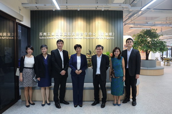 2021年,中新集团通过与裕廊集团的战略合作,以纬壹科技城大牌55号楼为载体,设立了苏州工业园区国际商务合作中心(新加坡)。英兰妮部长深入了解商务中心运营情况,与中心生态圈伙伴进行座谈,对中心在短短一年内所取得的成绩表示充分认可。作为双招双引、科技孵化、信息交流、境外投资和驻新服务的中新合作全新平台,商务中心一方面可以为出海到新加坡的优质中资企业提供全面的服务,另一方面可以协助新加坡和跨国企业开拓中国市场。